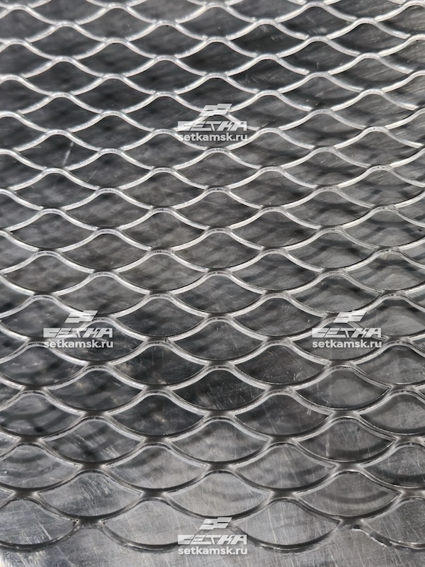 Цельнометаллическая просечно-вытяжная сетка с «чешуйчатой» ячейкой 28х12 мм. Позиция обладает высокой прочностью и жесткостью, а красивая «чешуйчатая» ячейка подходит для декоративных целей. Ячейка напоминает рыбью чешую или кольчугу. Этот рисунок эффективно играет со светом и тенью, что высоко ценится в дизайне. Напоминаем, что наша ЦПВС-сетка, благодаря цельнометаллической основе и особому расположению ячеек, не имеет сварных или иных соединений, которые могли бы стать «слабым звеном». Она устойчива к деформациям, вибрациям и значительным нагрузкам, не провисает со временем.